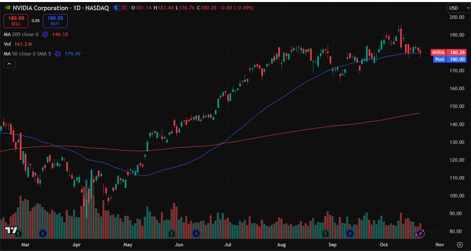 Let’s say an option trader has been watching NVIDIA (NVDA) and she thinks eventually it will move higher off its 50-day moving average, as seen below, and move up after its earnings announcement.